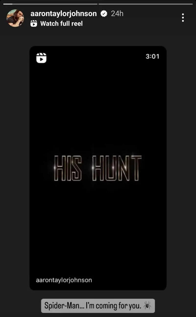 После выхода официального трейлера «Крэйвена-охотника» Тейлор-Джонсон поделился кадрами через соцсети, добавив надпись: «Человек-паук… Я иду за тобой».