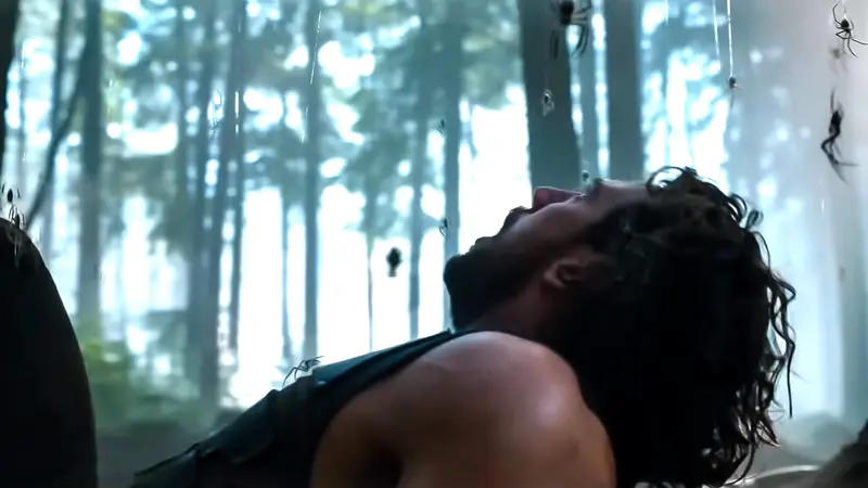 На Человека-паука намекнули в трейлере, когда рой свисающих пауков окружил Сергея Кравинова.