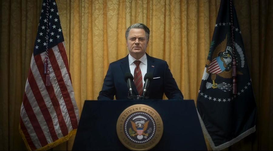 Финальная сцена фильма показывает нам убийство президента «Западным альянсом» и одной этой сценой режиссер перекрывает сразу несколько сюжетных линий.