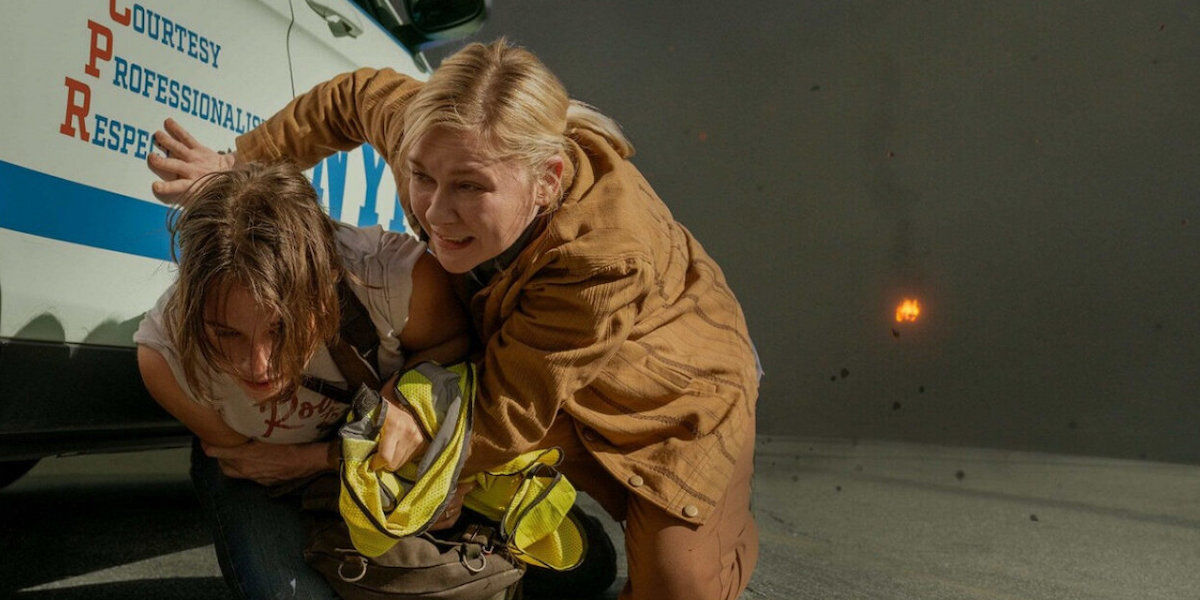 Во-первых, Джесси (Кейли Спейни), которая будучи юным и неопытным военным корреспондентом, умудряется запечатлеть тот самый последний кадр нынешнего президента. До этого эту цель преследовала Ли (Кирстен Данст), но она отдала свою жизнь, чтобы спасти Джесси от ее неопытного стремления стать взрослой и профессиональным военкором. Тем самым, Ли передает свою цель, навыки и опыт юной девочке, детский взгляд которой, после раковой ошибки, превращается в томный взгляд уже взрослого человека. С этого момента, для нее нужный кадр важнее нравственных ценностей, теперь она – профессионал своего дела.